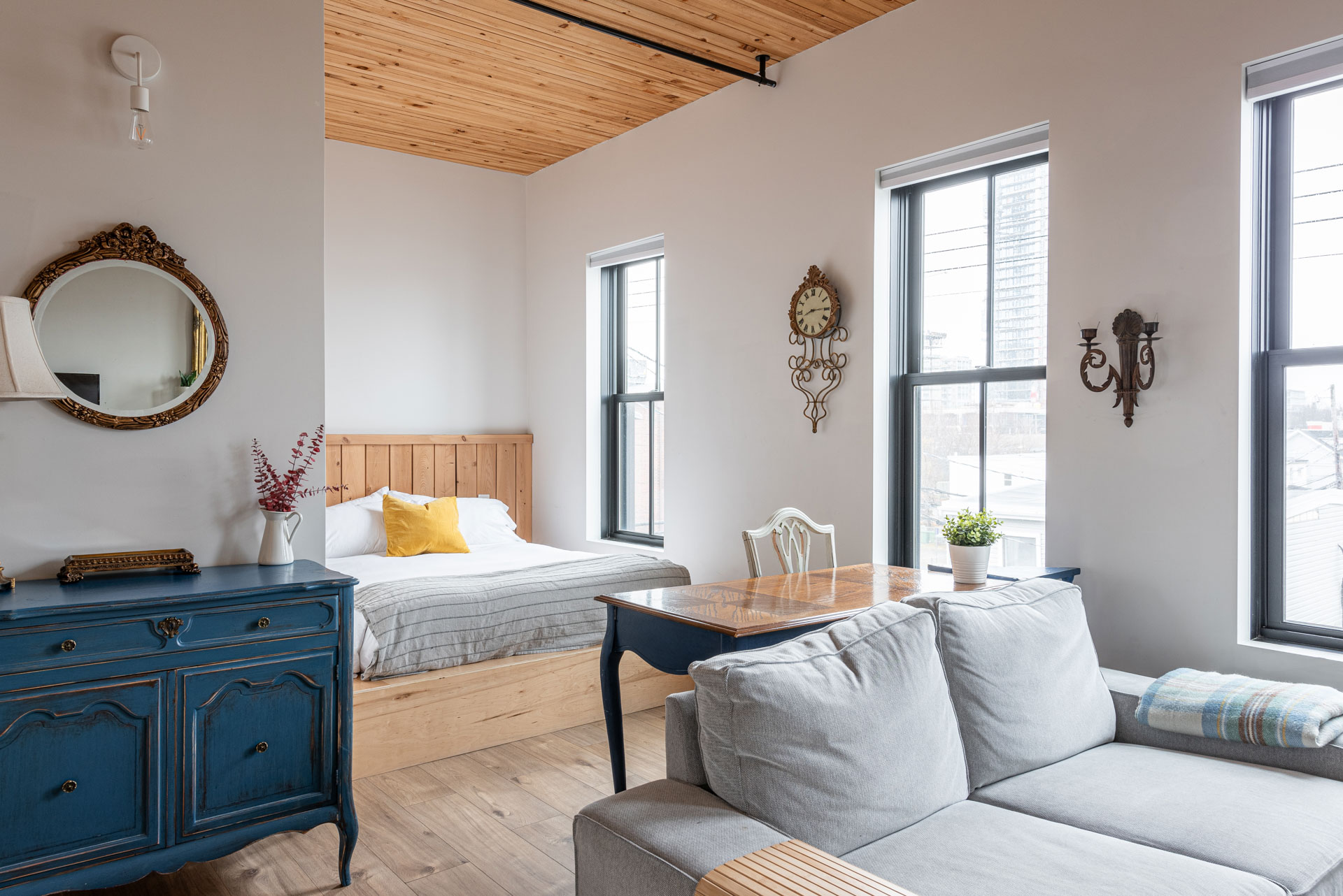 Uniquely designed suites with 1 Queen bed, comfortable for one person or for a couple for a getaway!